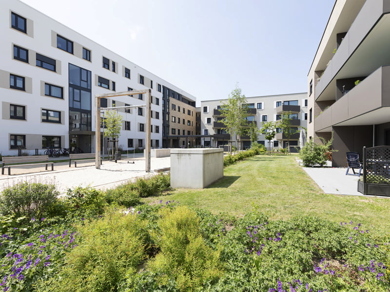 Foto: Das Quartier Höllenstein in Kirchheim. Seit 2013 hat die GGH hier 335 Wohnungen mit unterschiedlichen Grundrissen für breite Schichten der Bevölkerung errichtet. / Quelle: GGH