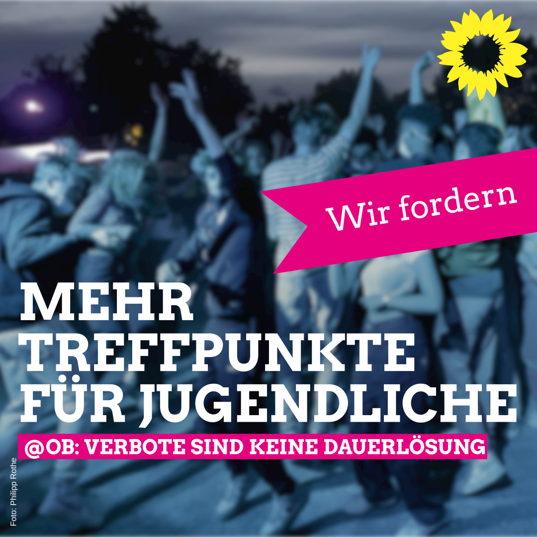 – Schaffung von weiteren nicht-kommerziellen und zumindest zum Teil wetterunabhängigen Treffpunkten für junge Menschen in jedem Stadtteil (siehe Haushaltsantrag “Masterplan für Treffpunkte für junge Menschen”)