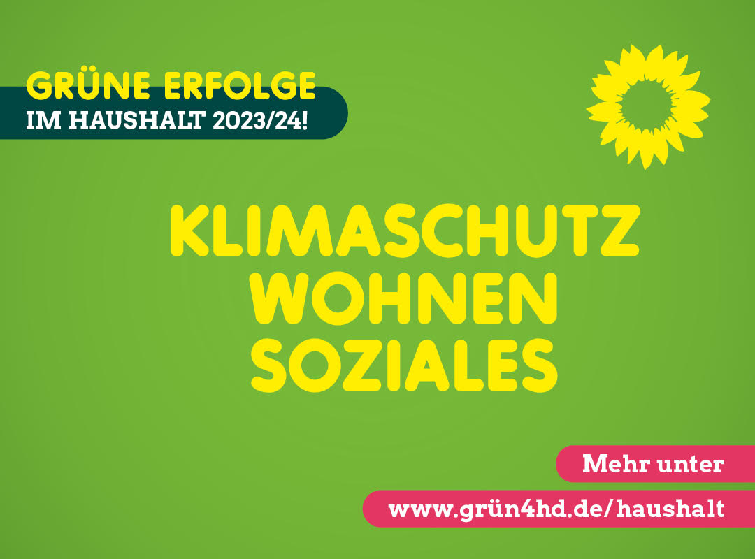 Klimaschutz und Mobilität, gemeinwohlorientiertes und bezahlbares Wohnen sowie soziale Infrastruktur – unser Fokus für den Doppelhaushalt 2023/24! Ziel ist es, Heidelberg auf eine nachhaltige und klimaneutrale Zukunft auszurichten und die Lebensqualität für ALLE Bewohner*innen zu verbessern. Wir freuen uns, dass am 20. Juli ein Haushaltspaket mit deutlich grüner Handschrift verabschiedet wurde.