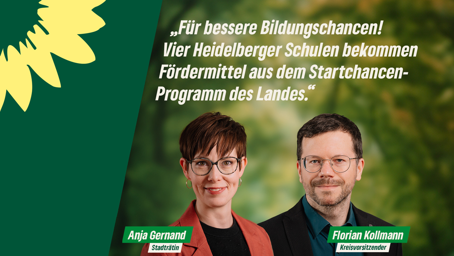 Florian Kollmann, Kreisvorsitzender und grüner Spitzenkandidat, sagt: „Mit dem Startchancen-Programm stellen Land und Bund enorme Fördermittel zur Verfügung, um Kinder und Jugendliche zu unterstützen, die es am dringendsten brauchen. Wir setzen uns für eine verlässliche und qualitativ hochwertige Bildung von Anfang an. Das Startchancen-Programm hilft dabei, Bildung und Betreuung stärker anhand der individuellen Bedürfnisse von Kindern und Jugendlichen auszurichten.“